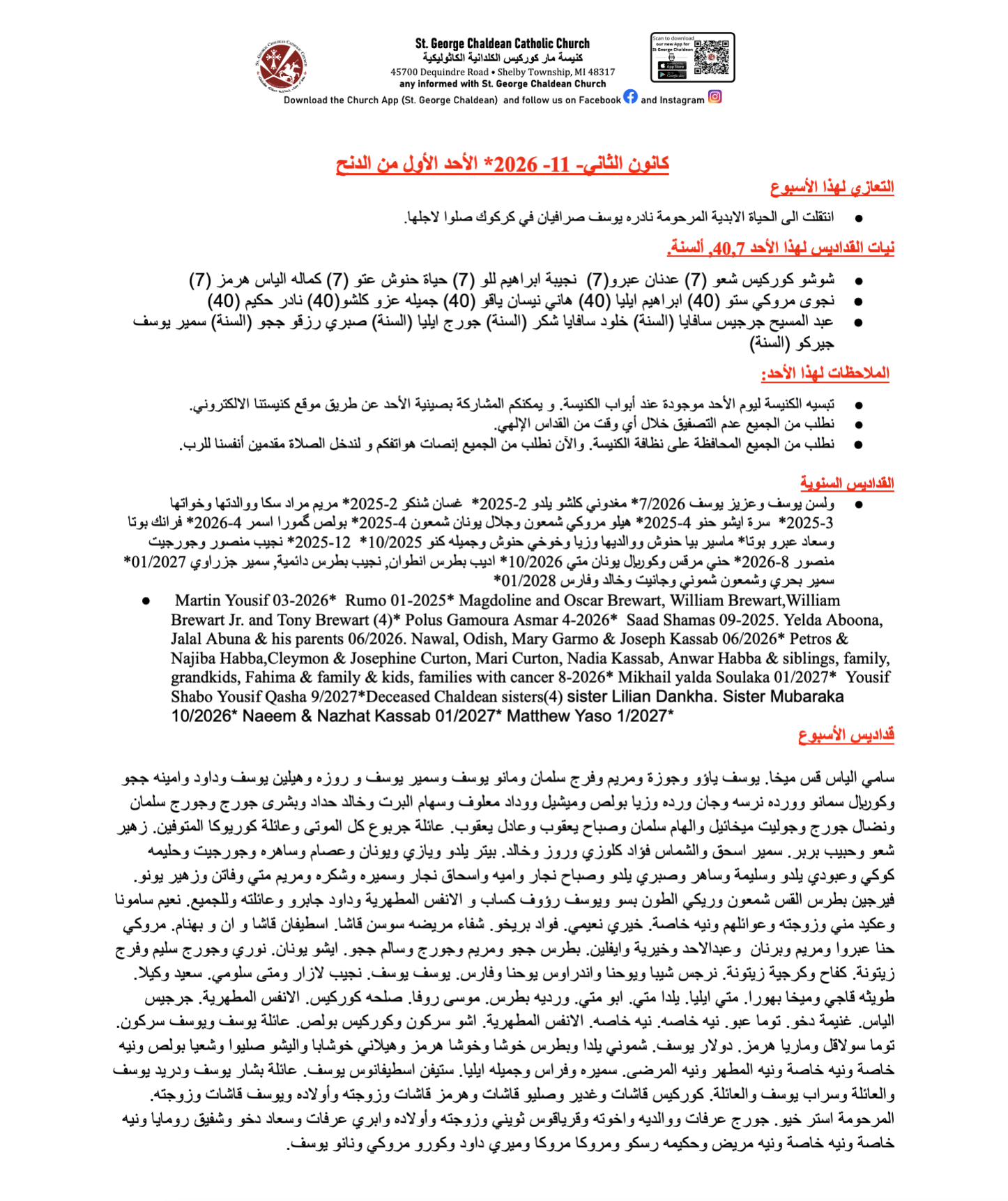 • Sunday Collection baskets are available by all exit doors; you may also participate in the Sunday collection electronically on our website at Stgeorgechaldean.com