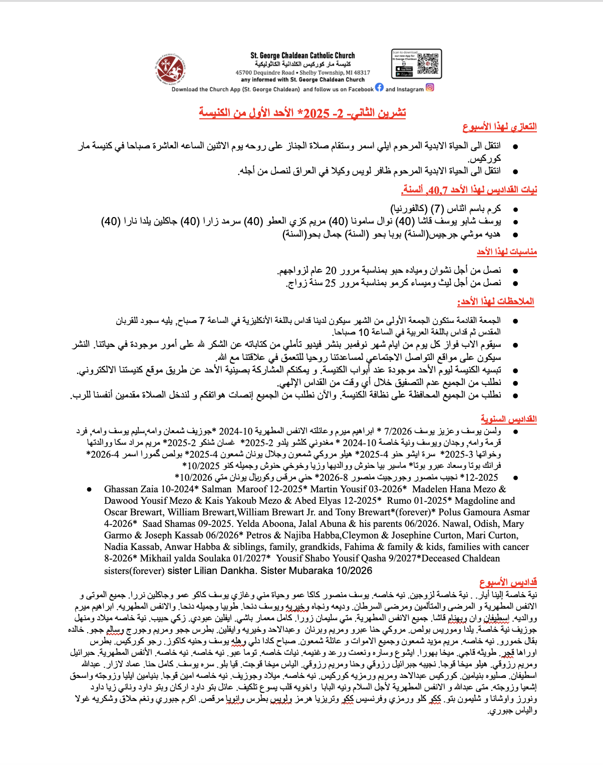 • Our Chaldean Catholic Charities of America volunteers will be present after masses this Sunday. Please see them in the lobby.