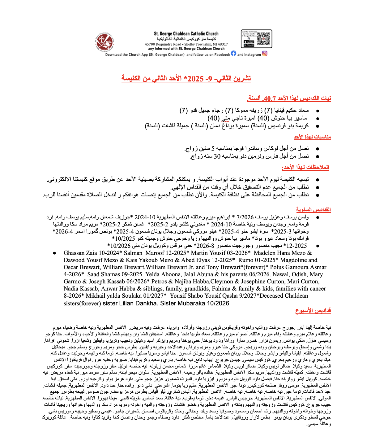 Sunday Collection baskets are available by all exit doors; you may also participate in the Sunday collection electronically on our website at Stgeorgechaldean.com