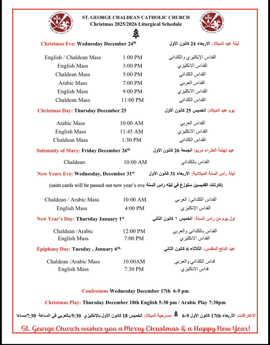 Sunday Collection baskets are available by all exit doors; you may also participate in the Sunday collection electronically on our website at Stgeorgechaldean.com