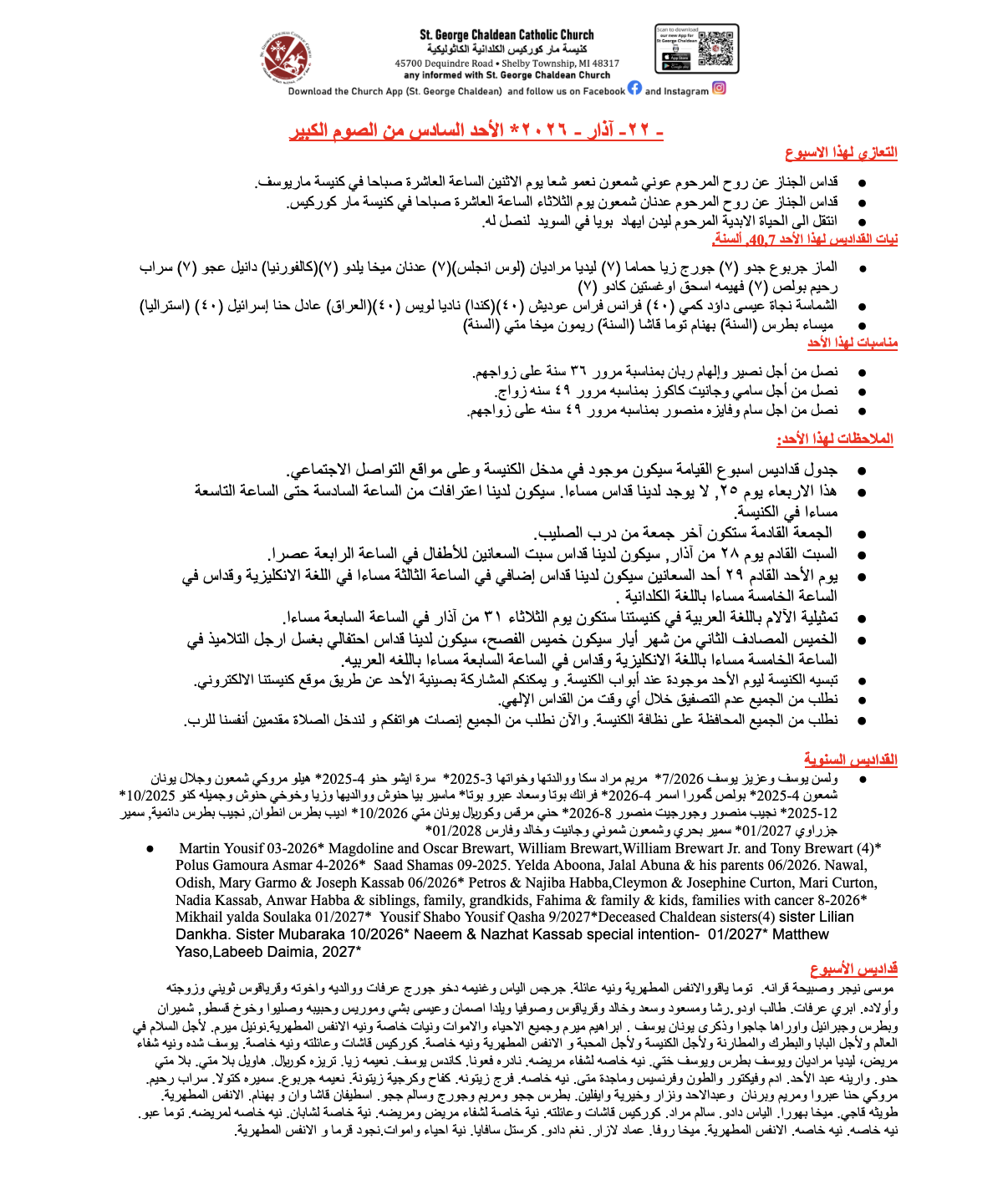Akram Shaouni and parents, Amira Mamou and parents, Salim and Tawitha Kirma, Marco Yousif, Sana Dallo, Brandon Kallabat, Jessica Hana, Intisar and Randy Sitto, The Shaouni and Mamou family Intentions, Special Intentions, Raad Toma, Sabah Shelmon, Safe travels, Habi Abouna, Dawood Toma, yakoub Yono, selma yono, toma abro, faraj garmo & Garmo family, Yono family. Sitto family, Yousif Qaisar, Amanoal Qaisar, Isho, Younan Nano Gowro, Madelyn Hanna Nerges Bahoo Steafo, praying for healing noura jirjees. Waseem Bouny.